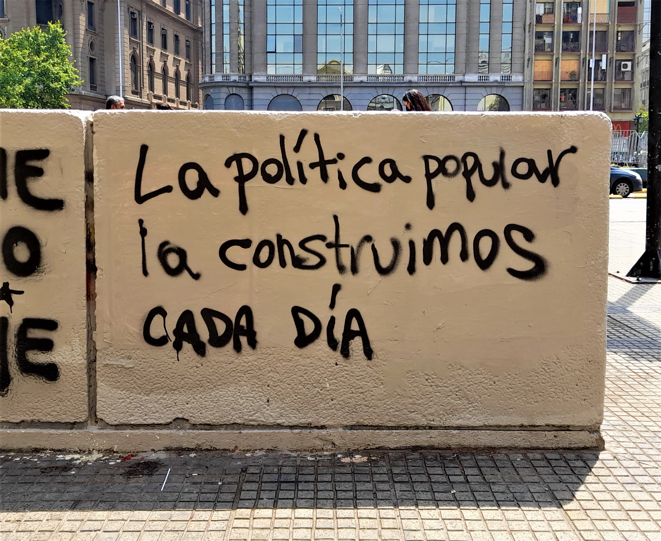 En la salida del metro Universidad de Chile, hay un graffitti que reza: “La política popular la construimos cada día”. Esta frase, que parece de perogrullo para quienes llevamos años participando y militando en movimientos sociales y populares, siempre tiene otro significado cuando el escenario político estatal se mueve, por ejemplo, por unas elecciones.